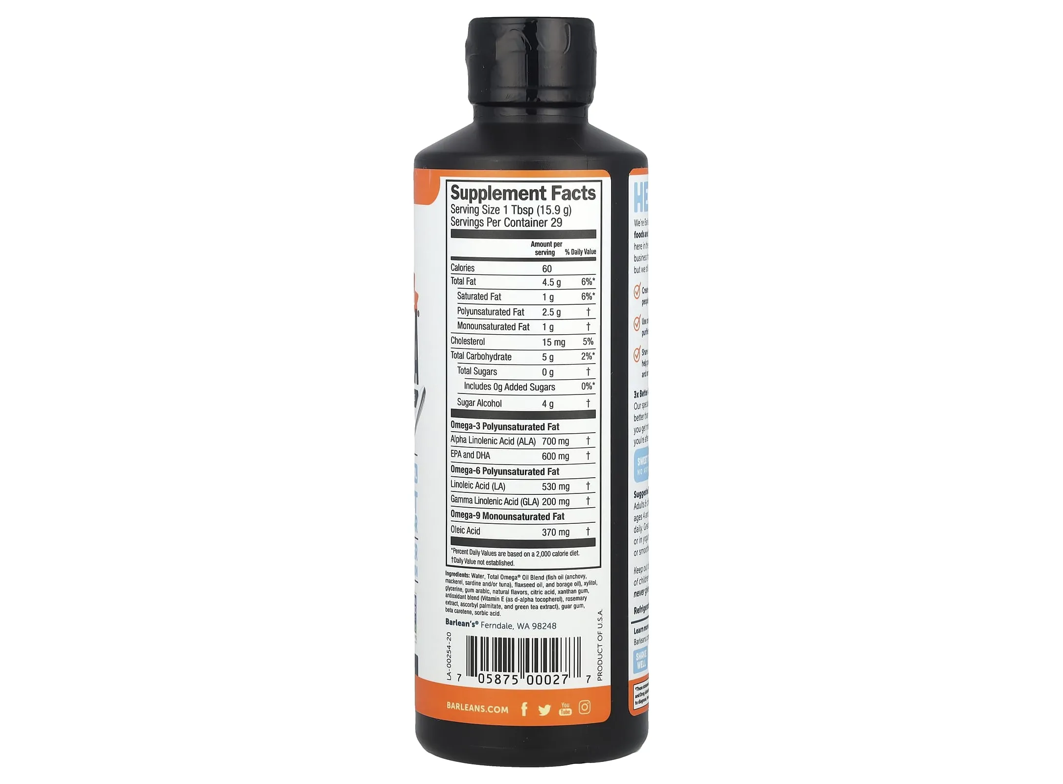 Barlean's, Total Omega From Fish, Flax + Borage Oils Orange Creme, 454 г