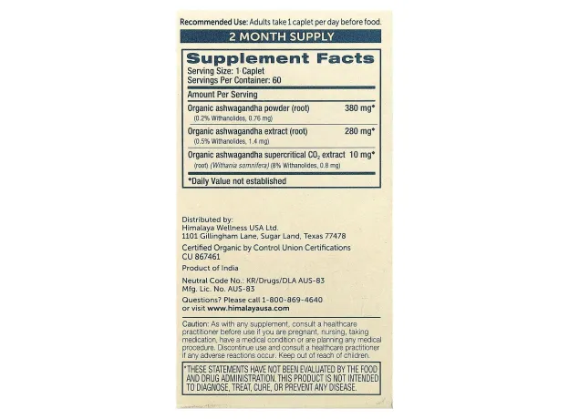 Органическая ашваганда сверхкритического действия Экстракт CO2 (корень) (Withania somnifera) (8% витанолидов, 0,8 мг) |