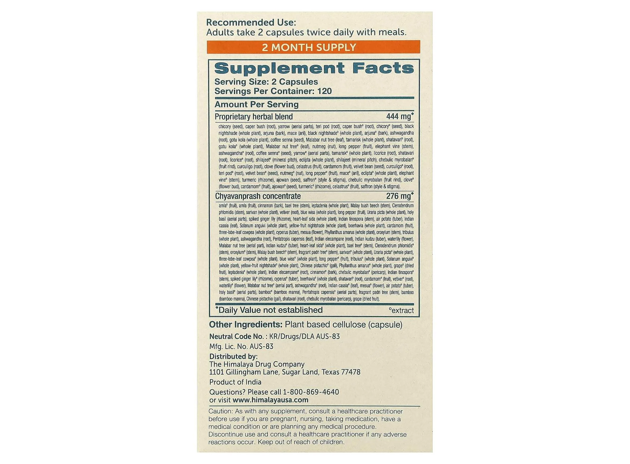 Концентрат Чаванпраша: амла (фрукт), корица (кора), дерево баэль (стебель), лептадения (все растение), малайский кустарниковый бук (стебель), клеродендрум фломидис (стебель), сариван (все растение), ветивер (корень), голубой висс (все растение), длинный перец (плоды), Урария пикта (целое растение), базилик священный (надземные части), имбирная лилия с шипами (корневище), сида сердцевидная (целое растение), индийская тиноспора (стебель), воздушный картофель (клубень), индийская кассия (лист), паслен ангивийский (целое растение), паслен желтоплодный (все растение), бурхавия (все растение), кардамон (плоды), вигна трехлистная (все растение), циперус (клубень), мезуа (цветок), Филлантус амарус (все растение), ороксилум (стебель), трибулус (все растение), ашваганда (корень), Пентатропис капенсис (лист), индийский девясил (корень), индийский кудзу (клубень), кувшинка (цветок), малабарский орех (надземная часть), индийский кудзу (клубень), сида сердцевидная (целое растение), дерево баэль (стебель), Клеродендрум фломидис° (стебель), ороксилум (стебель), малайский кустарниковый бук (стебель), ароматное дерево падри (стебель), сариван (целое растение), Урария пикта (целое растение), вигна трехлистная (целое растение), висса голубая (целое растение), перец длинный (плоды), трибулус (целое растение), паслен ангуиви (целое растение), паслен желтоплодный (целое растение), китайская фисташка (желчь), Филлантус амарус (целое растение), виноград (сухофрукты), лептадения (целое растение), девясил индийский (корень), корица (кора), чебурашка миробалан (околоплодник), индийский тиноспора (стебель), имбирная лилия с шипами (корневище), циперус (клубень), бурхавия (целое растение), шатавари (корень), кардамон (плоды), ветивер (корень), водяная лилия° (цветок), малабарский орех (надземная часть), ашваганда (корень), индийская кассия (лист), месуа (цветок), воздушный картофель (клубень), базилик священный (надземные части), бамбук (бамбуковая манна), Pentatropis capensis (надземные части), душистое дерево падри (стебель), бамбук (бамбуковая манна), китайская фисташка (желчь), шатавари (корень), миробалан (околоплодник), виноград (сухофрукты). |