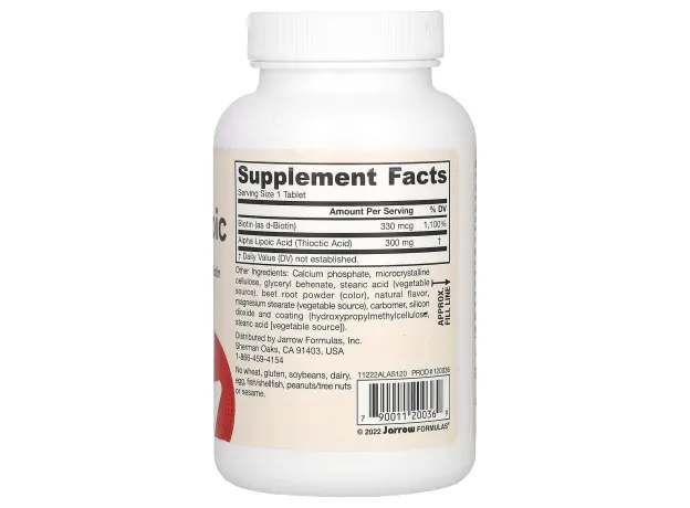 Jarrow Formulas, Alpha Lipoic Sustain with Biotin, 120 таблеток
