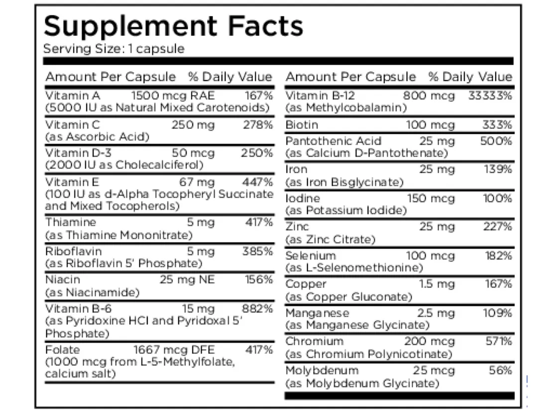 | Фолат (L-5-метилфолат) | 1667 мкг DFE | 417% |