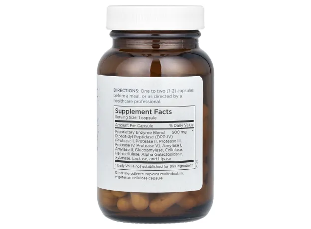| Фирменная смесь ферментов (дипептидилпептидаза IV, протеаза I, II, III, IV, V, амилаза I, II, глюкоамилаза, целлюлаза, гемицеллюлаза, альфа-галактозидаза, ксиланаза, лактаза, липаза) | 500 мг | ** |