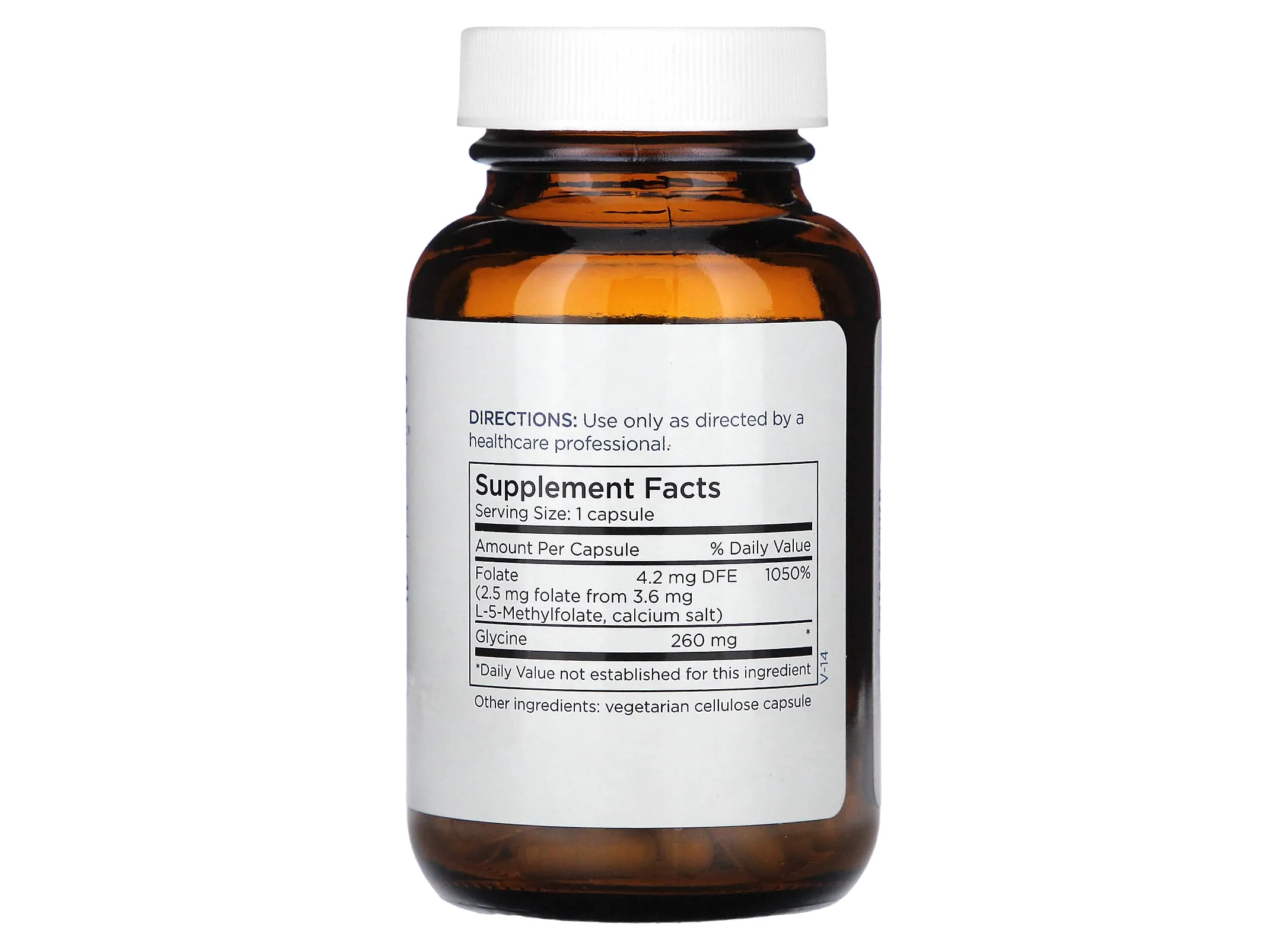 | Фолат (2.5 мг из 3.6 мг L-5-метилфолата, кальциевая соль) | 4.2 мг DFE | 1050% |