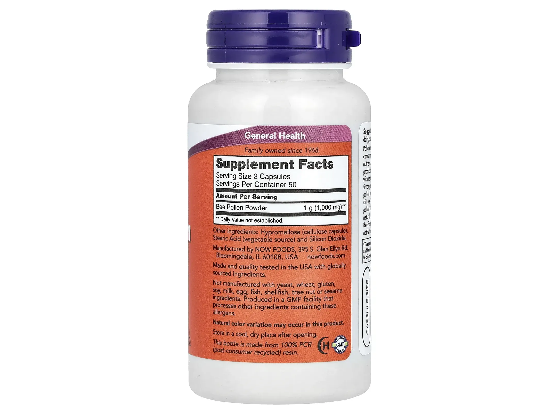 Now Foods, Bee Pollen 500 mg, 100 капсул