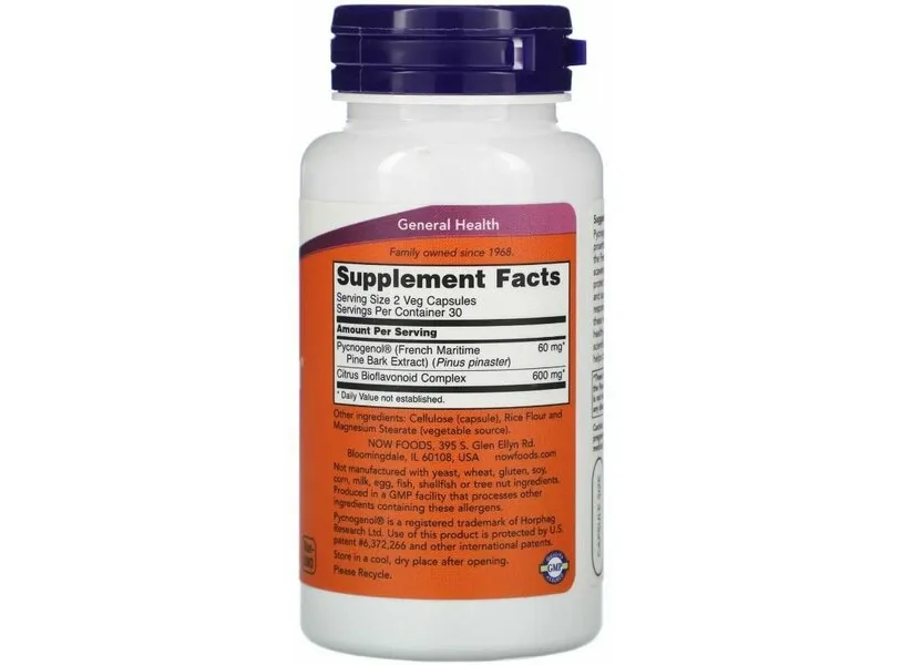Now Foods, Pycnogenol 30 mg, 60 капсул