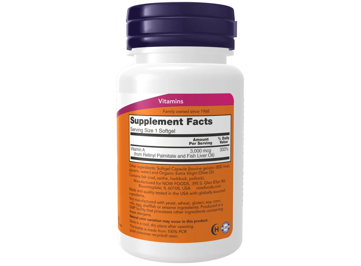 Now Foods, Vitamin A 10000 IU, 100 гелевых капсул