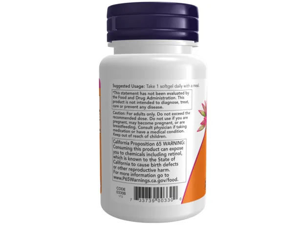 | Витамин А (из ретинола пальмитата и рыбьего жира) | 3,000 мкг (10 000 МЕ) | 333% |