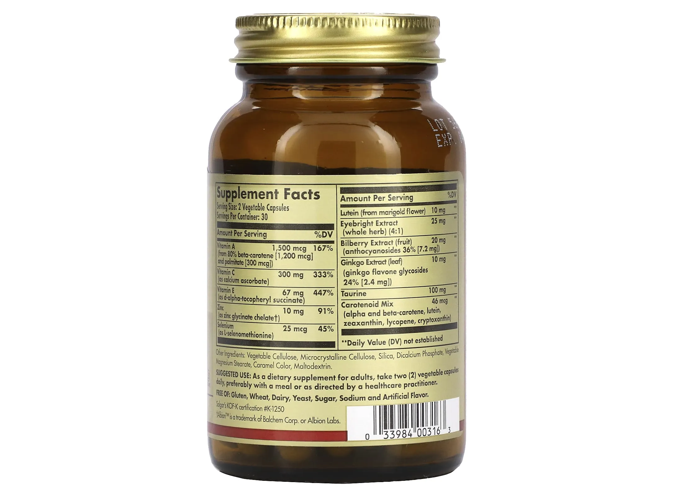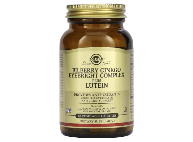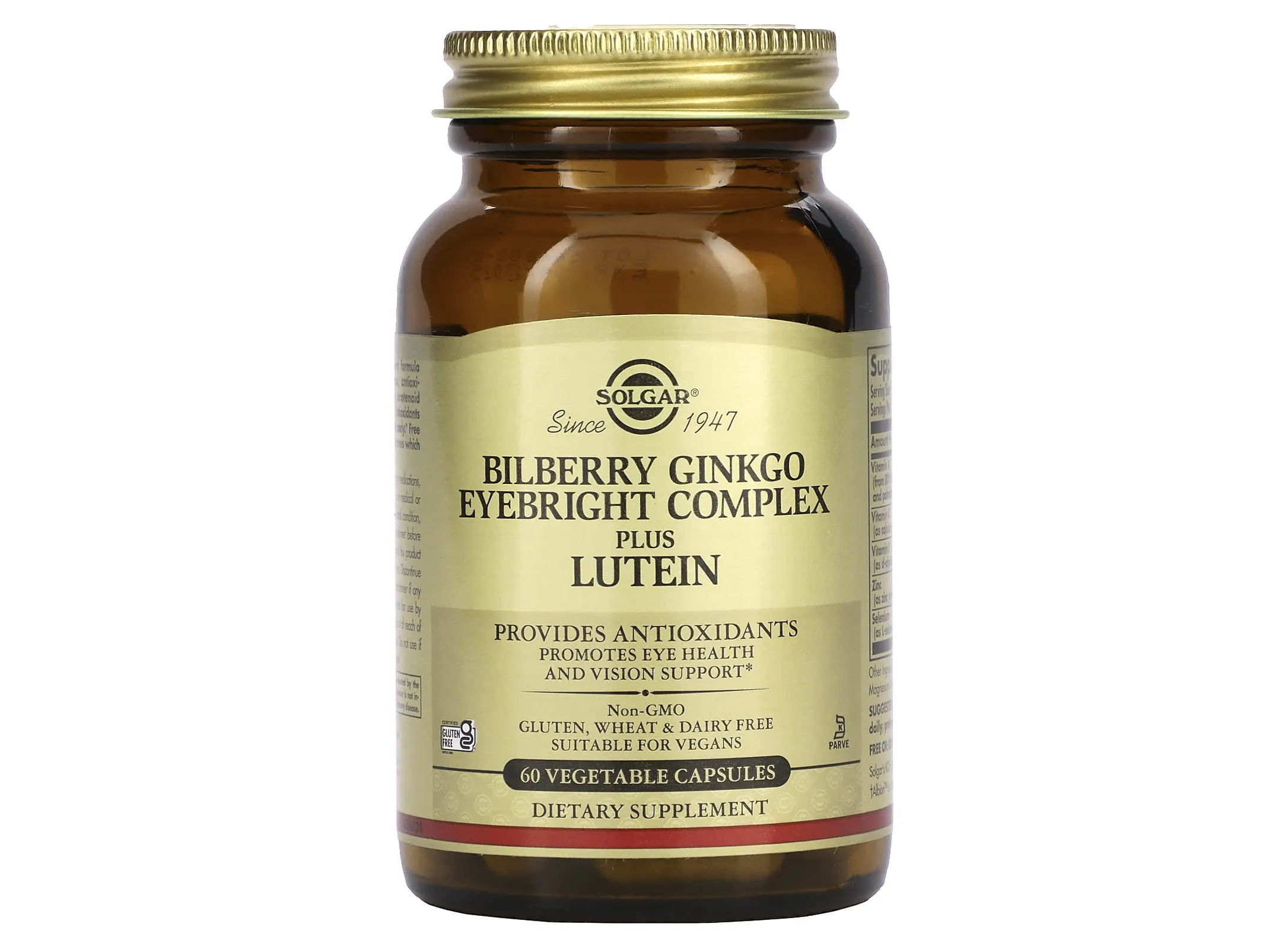 Solgar, Bilberry Ginkgo Eyebright Complex plus Lutein, 60 капсул