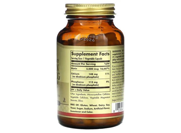 | Биотин (витамин B7) | 5,000 мкг | 16,667% |