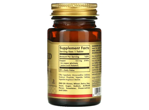 Solgar, Chelated Copper 2.5 mg, 100 таблеток