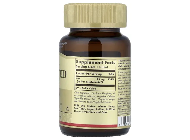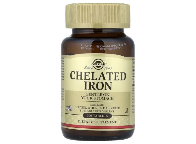Solgar, Chelated Iron 25 mg, 100 таблеток