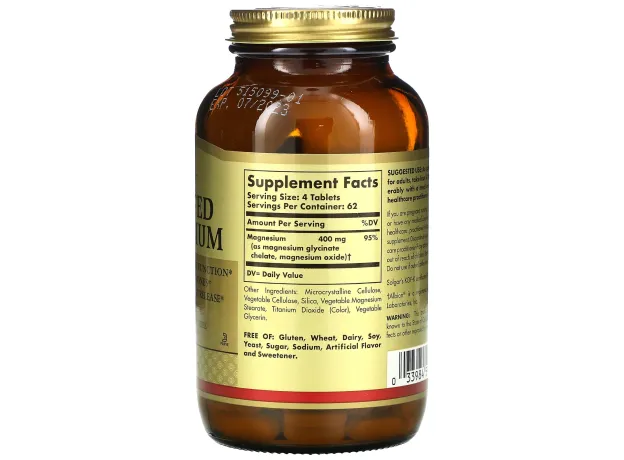 | Магний (в форме глицината магния и оксида магния) | 400 мг | 95% |