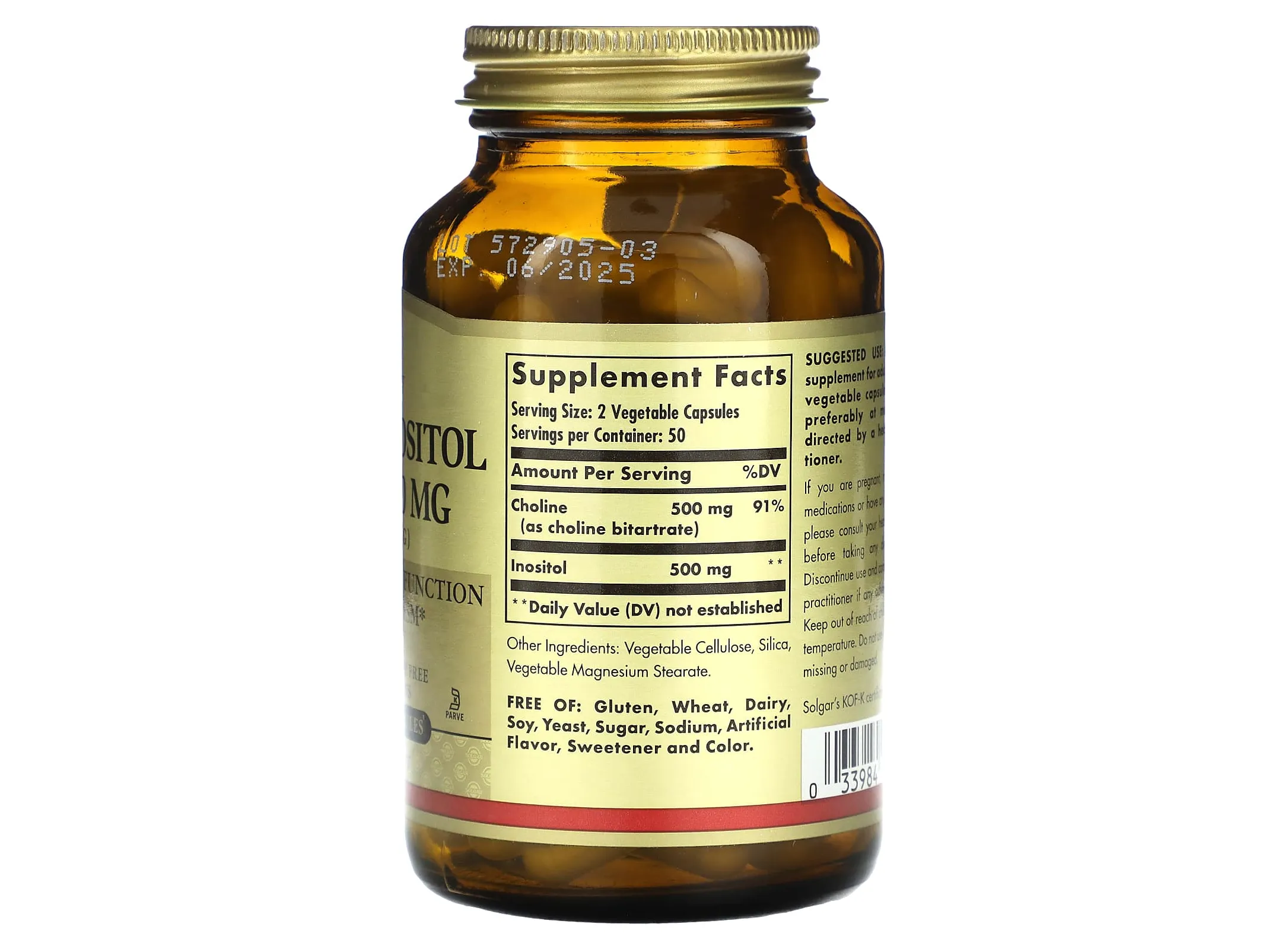 Solgar, Choline/Inositol 500 mg/500 mg, 100 капсул