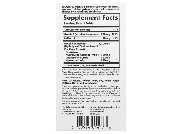 Solgar, Collagen Hyaluronic Acid Complex, 30 таблеток
