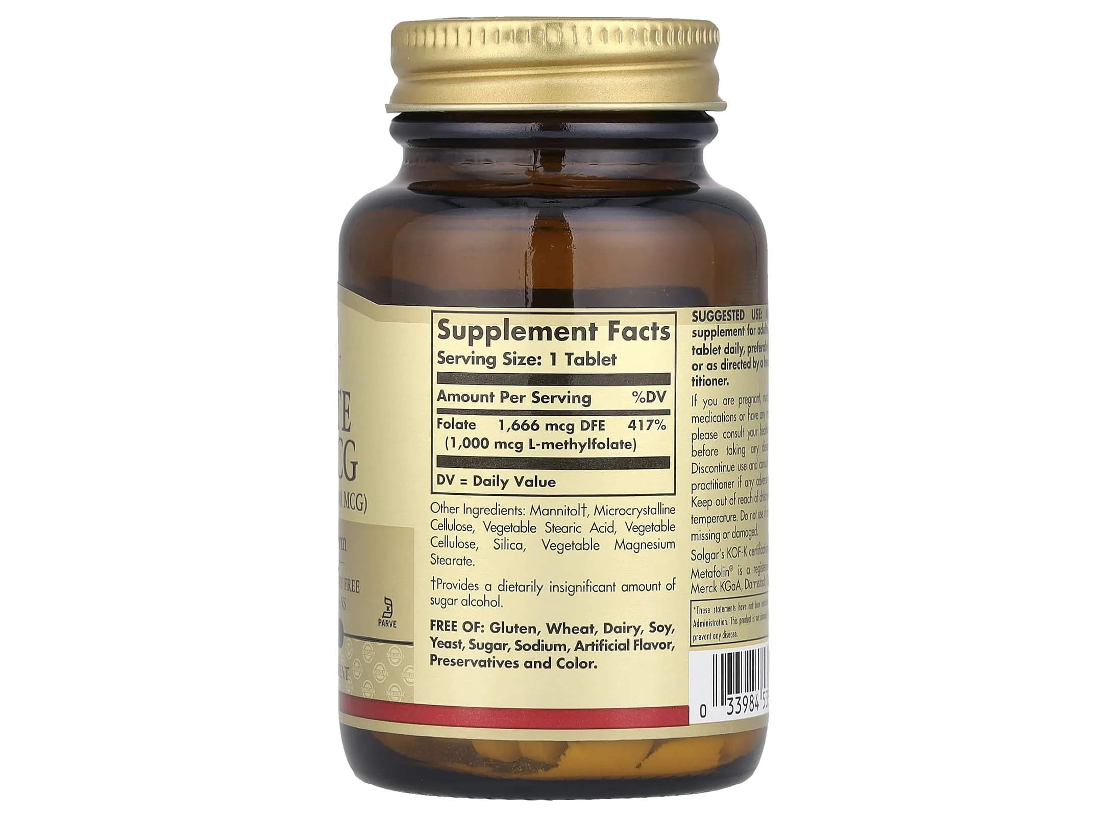 Solgar, Folate 1000mcg Metafolin 1000mcg, 120 таблеток