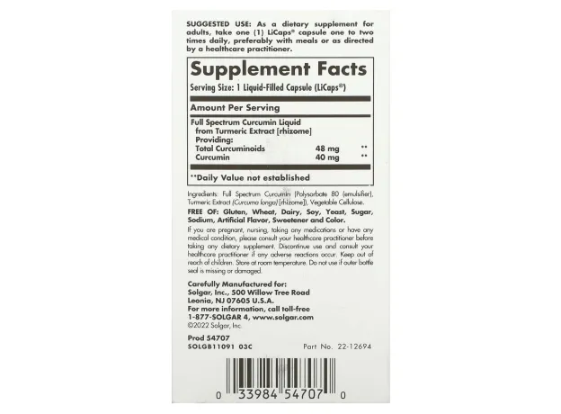 Solgar, Full Spectrum Curcumin, 60 капсул