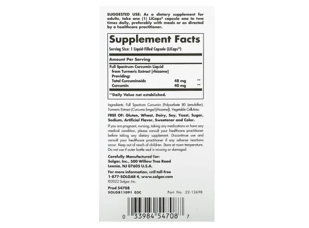 Solgar, Full Spectrum Curcumin, 90 капсул
