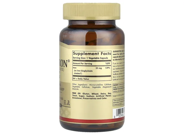 | Железо (в форме бисглицината железа) | 25 мг | 139% |