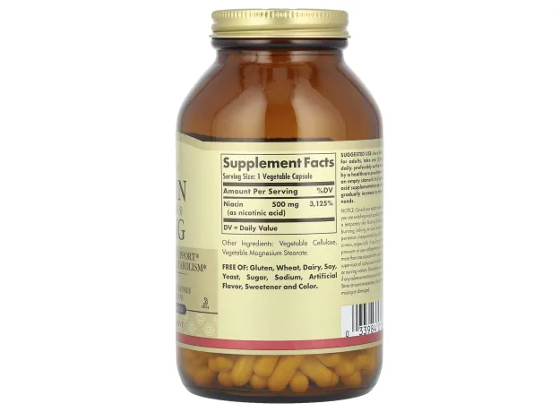 Перед применением проконсультируйтесь с врачом, особенно при переходе с других форм ниацина. Ниацин может вызывать временное покраснение кожи, жар, зуд или сыпь. У чувствительных людей возможны снижение давления или головокружение. Не превышать рекомендованную дозировку без наблюдения врача. Не применять при беременности или кормлении грудью. Прекратить приём при возникновении побочных реакций. Не использовать при повреждённой пломбе.