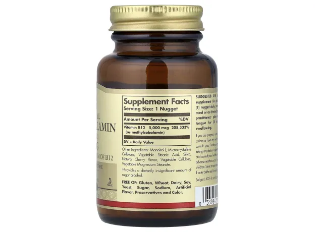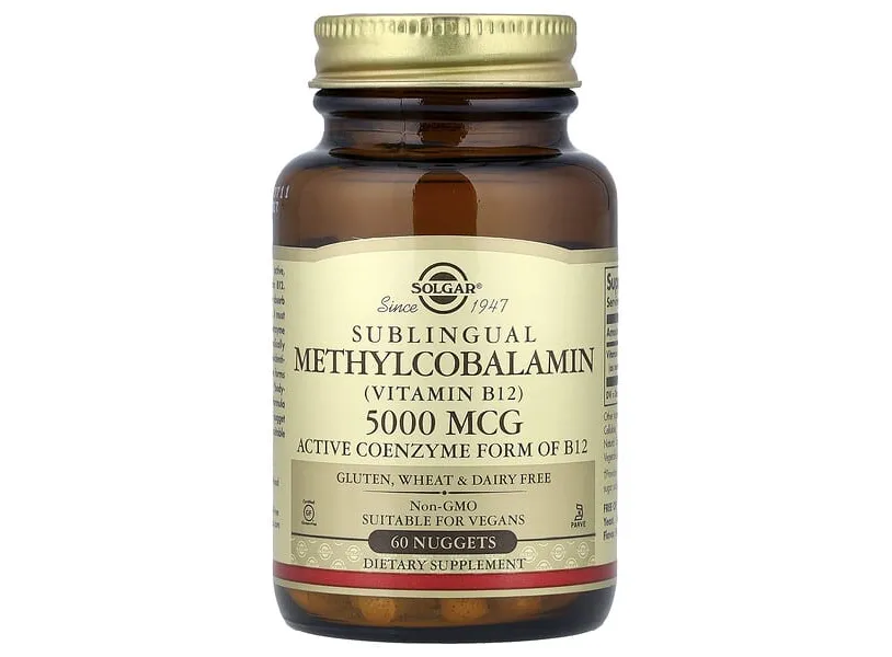Solgar, Sublingual Methylcobalamin Vitamin B12 5000 Mcg, 60 капсул