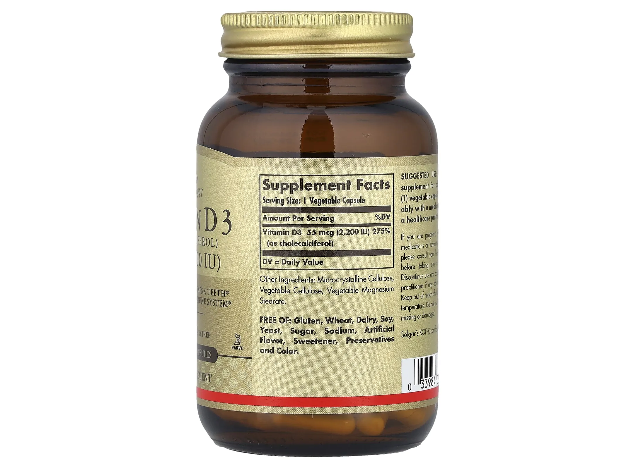 | Витамин D3 (в форме холекальциферола) | 55 мкг (2,200 МЕ) | 275% |