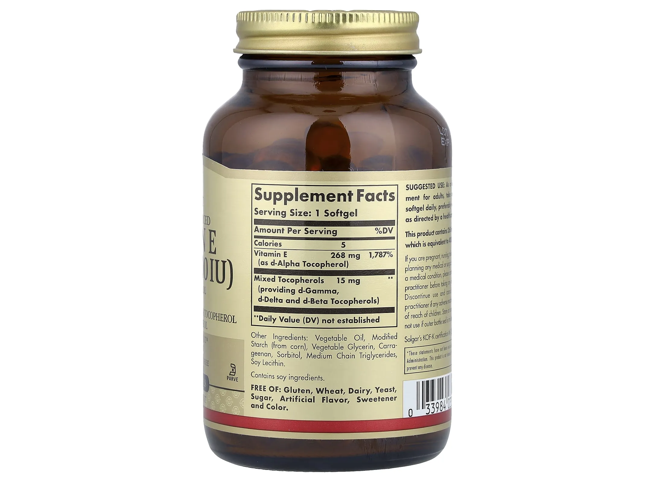 Solgar, Vitamin E - 268 mg 400IU, 100 гелевых капсул