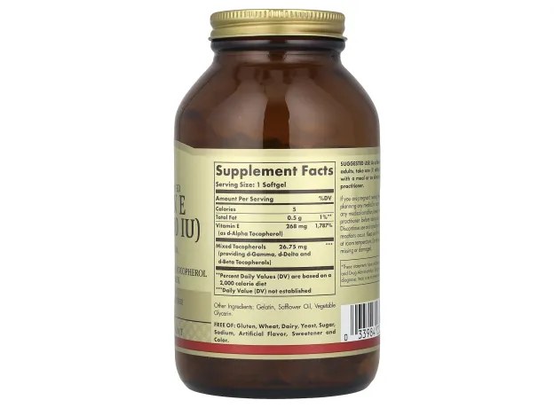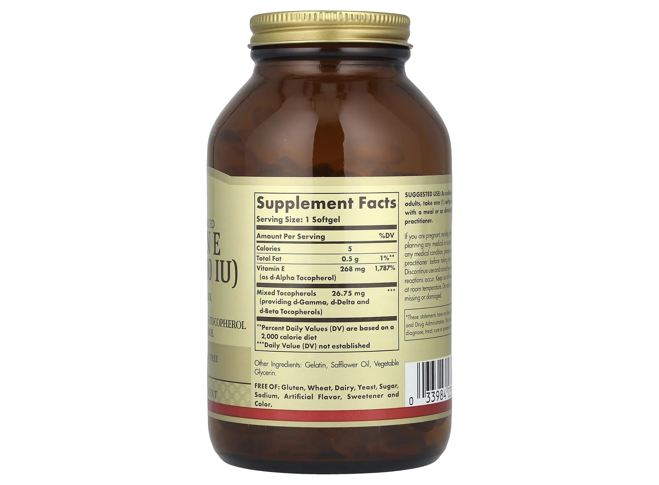 | Витамин E (в форме d-альфа-токоферола) | 268 мг (400 IU) | 1787% |