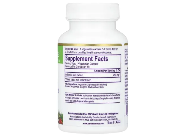 Paradise Herbs, Artichoke 250 mg, 60 капсул